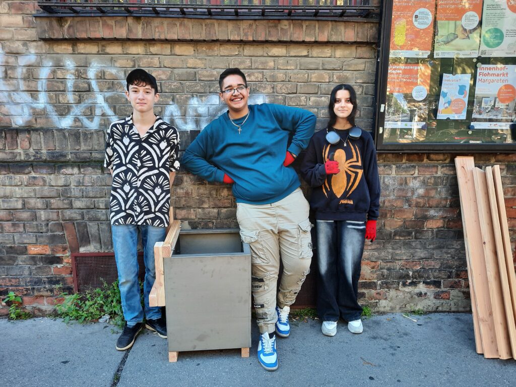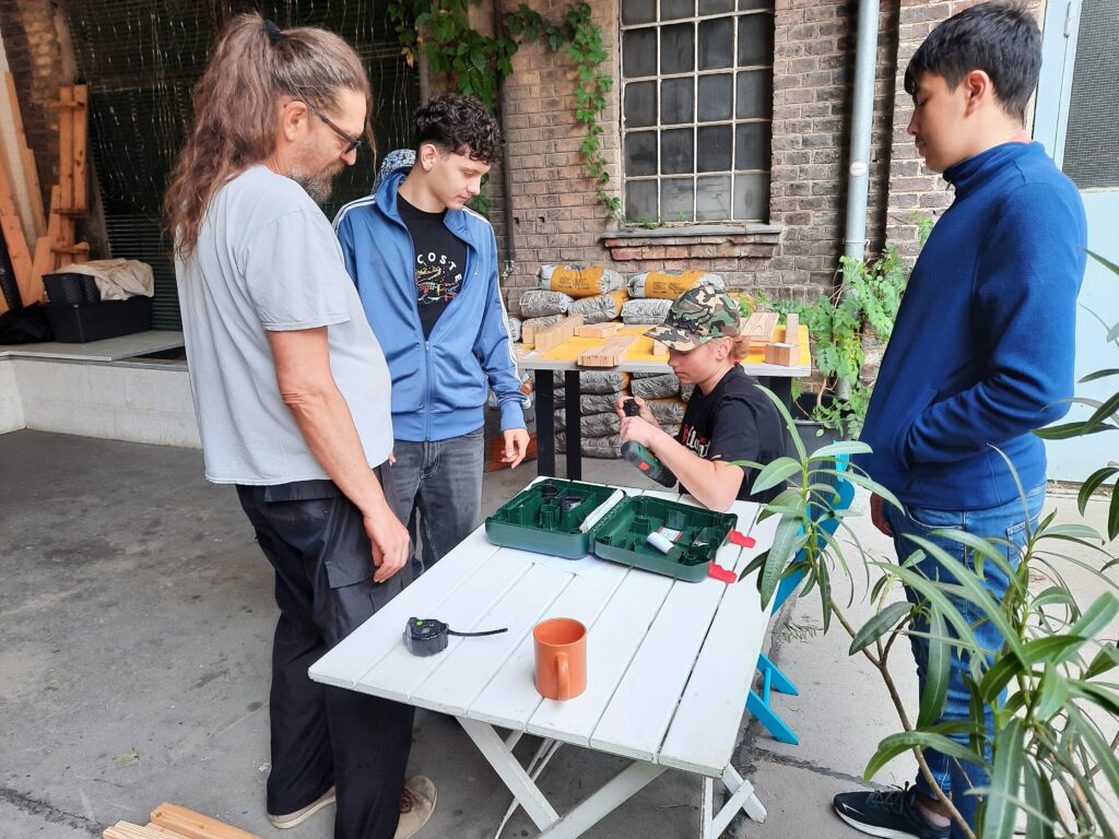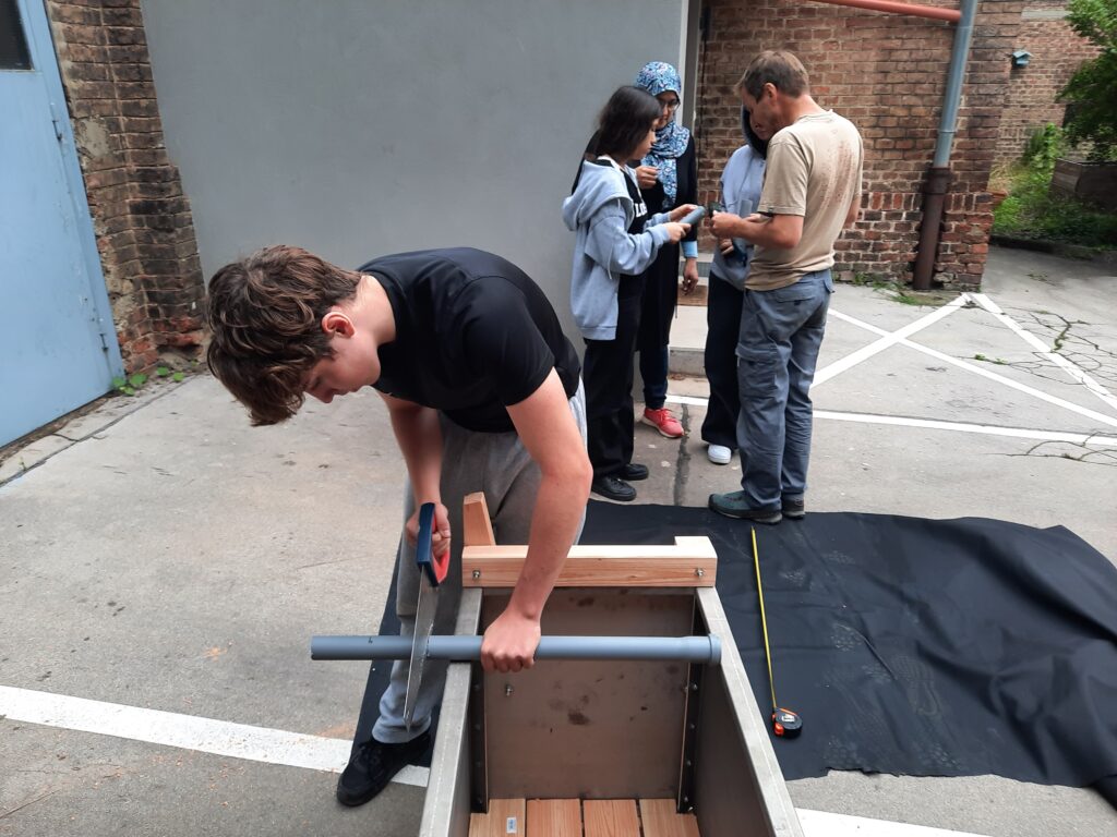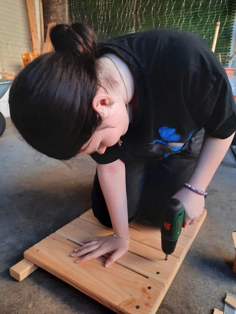 Die Schüler*innen konnten verschiedene handwerkliche Tätigkeiten ausprobieren – viele von ihnen haben zum ersten Mal geschraubt, gehämmert, gebohrt,…. und mit Erde und Pflanzen hantiert.