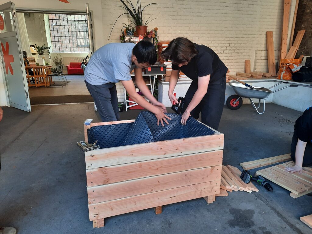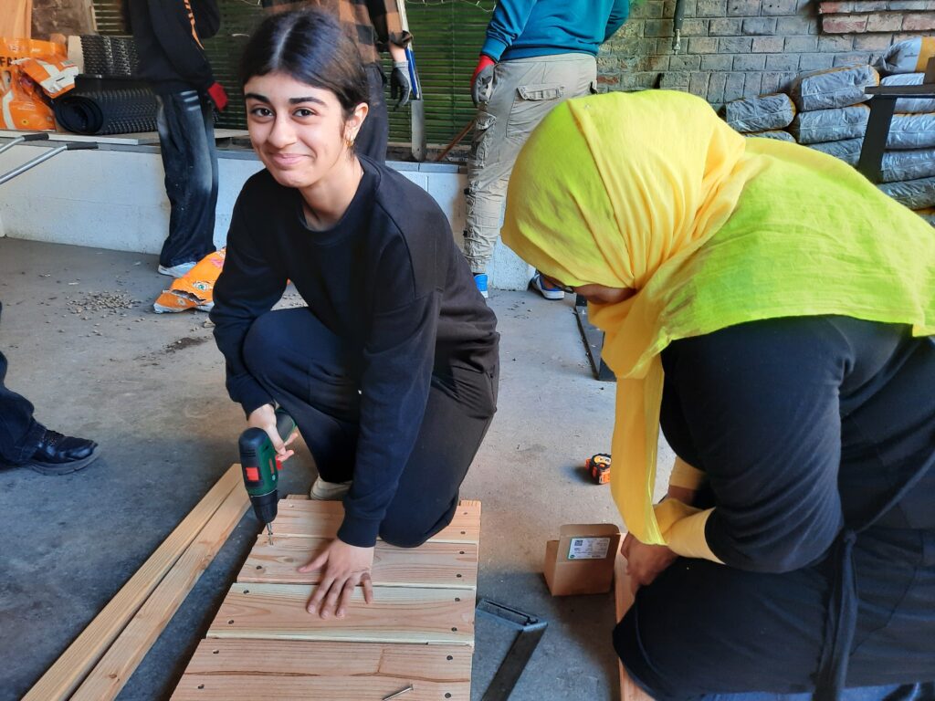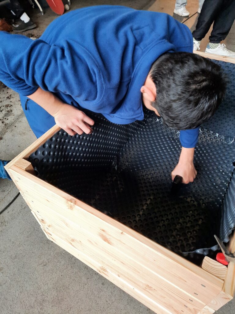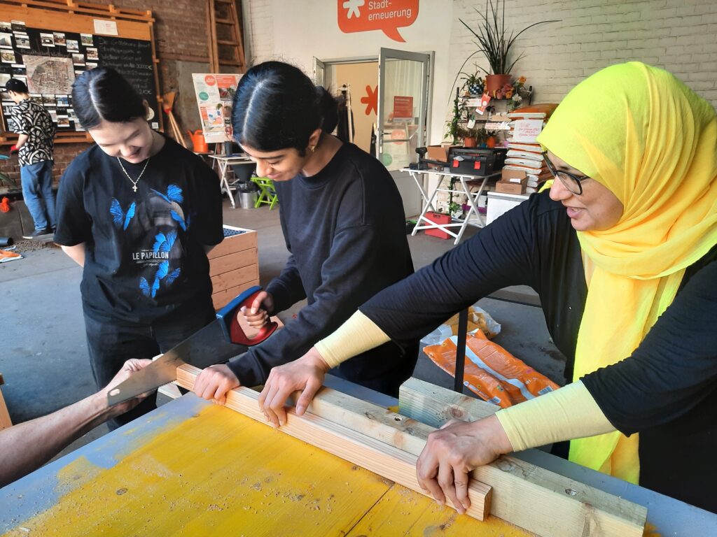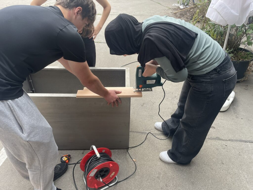 Die Schüler*innen konnten verschiedene handwerkliche Tätigkeiten ausprobieren – viele von ihnen haben zum ersten Mal geschraubt, gehämmert, gebohrt,…. und mit Erde und Pflanzen hantiert.